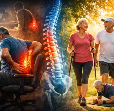 Muitas pessoas acreditam que, se a coluna dói, o melhor é repousar. A ciência moderna diz exatamente o contrário. O repouso excessivo pode alimentar o ciclo "dor-imobilidade-declínio funcional".