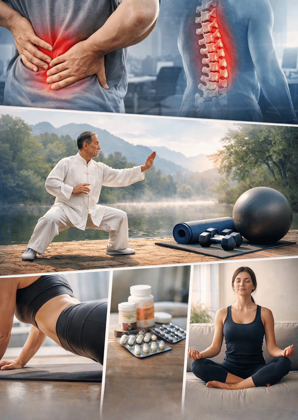 A ciência é clara: o exercício físico é o melhor caminho para gerenciar a dor lombar crônica em adultos. A combinação "vencedora" apontada pela pesquisa é o Tai Chi, 3 vezes por semana, por 15 a 30 minutos, mantendo a prática por mais de 4 meses.